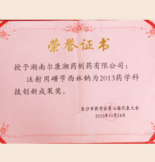 2013年藥學(xué)科技創(chuàng)新成果獎(jiǎng)