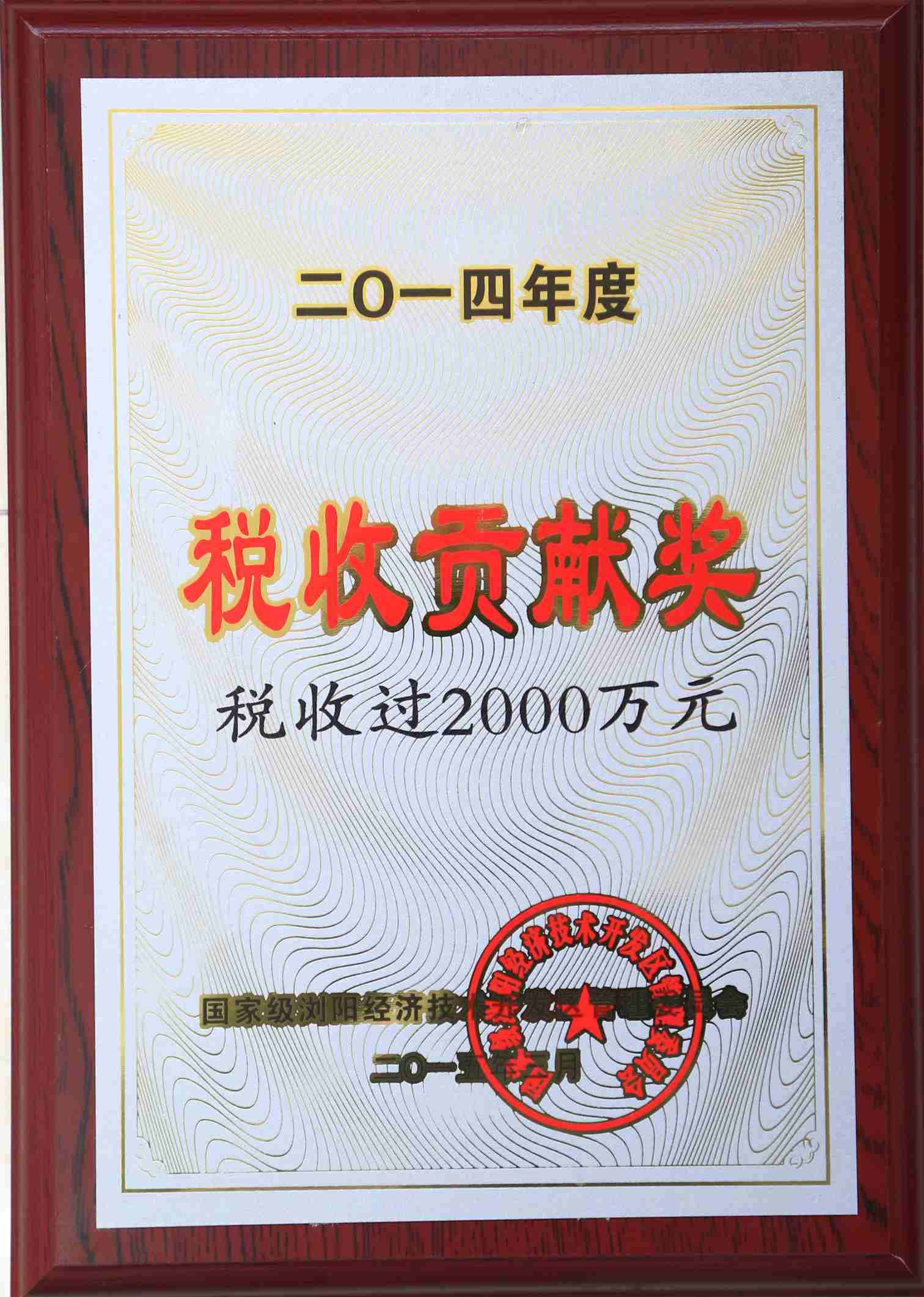 2014年度稅收貢獻(xiàn)獎(jiǎng)(稅收過2000萬元)